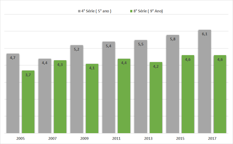 * O IDEB (Índice de Desenvolvimento da Educação Básica) é o principal indicador de qualidade educacional que combina informações de desempenho em exames padronizados ( Prova Brasil ou Saeb – Sistema de Avaliação da Educação Básica) – obtido pelos estudantes ao final das etapas de ensino (4ª e 8ª séries do ensino fundamental e 3ª série do ensino médio) -acrescido de informações sobre rendimento escolar (aprovação). É medido a cada dois anos e apresentado numa escala que varia de zero a dez. A meta para o Brasil é alcançar a média 6.0 até 2021, patamar educacional correspondente ao de países da Organização para a Cooperação e Desenvolvimento Econômico (OCDE), como Estados Unidos, Canadá, Inglaterra e Suécia. (Fonte: Qedu – http://academia.qedu.org.br/ideb/).