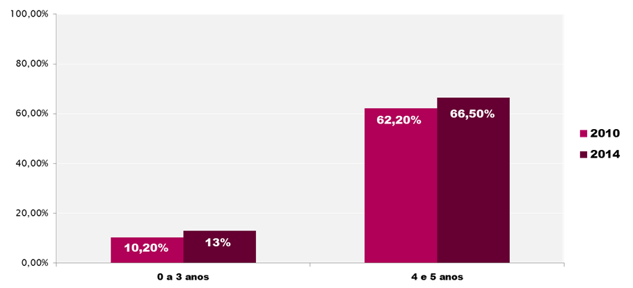 Taxa de frequência escolar de crianças de 0 a 5 anos de idade – Contagem – 2010 e 2014*