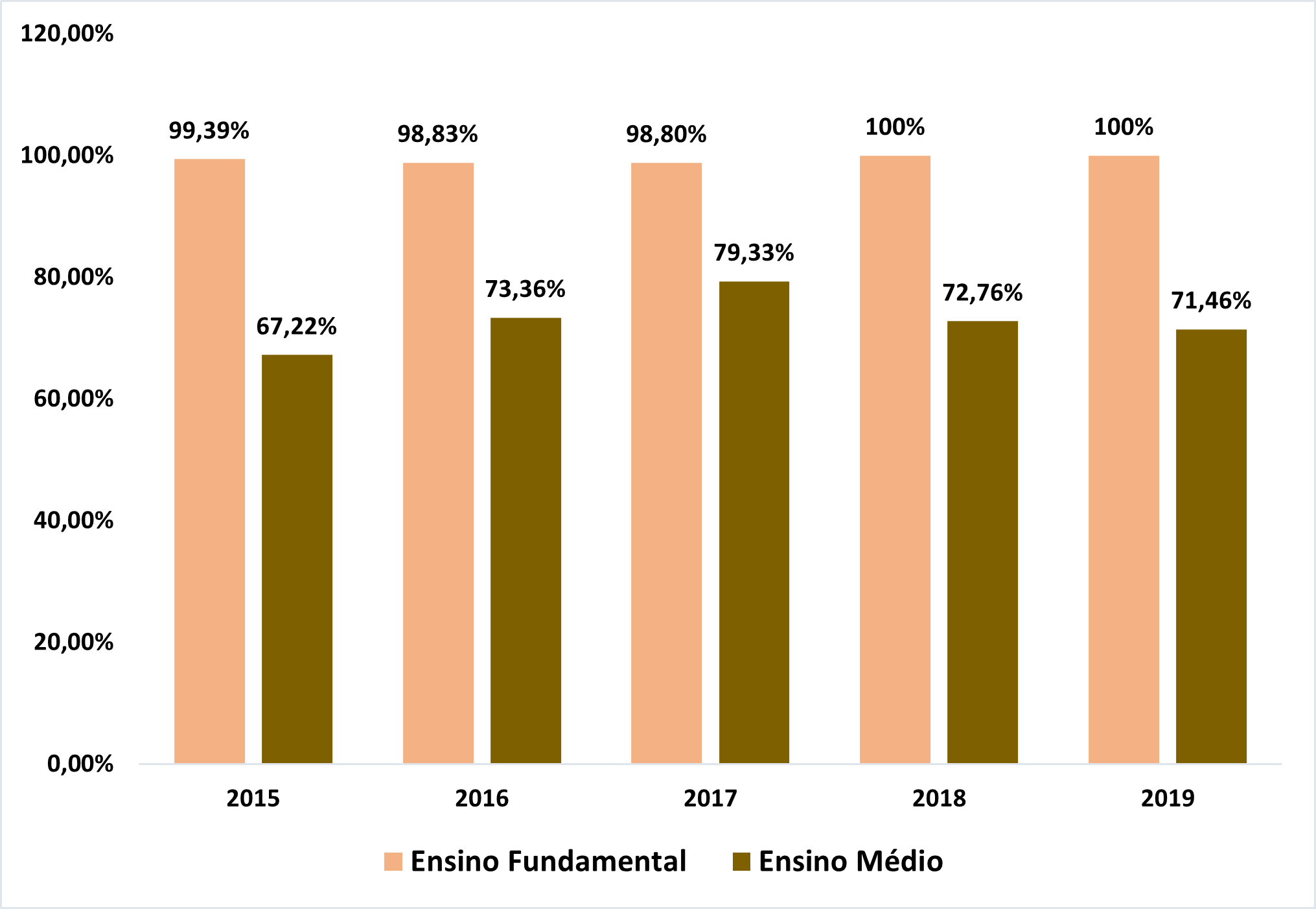 * Taxa de escolarização líquida indica o percentual da população em determinada faixa etária que se encontra matriculada no nível de ensino adequado à sua idade.
