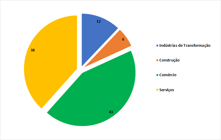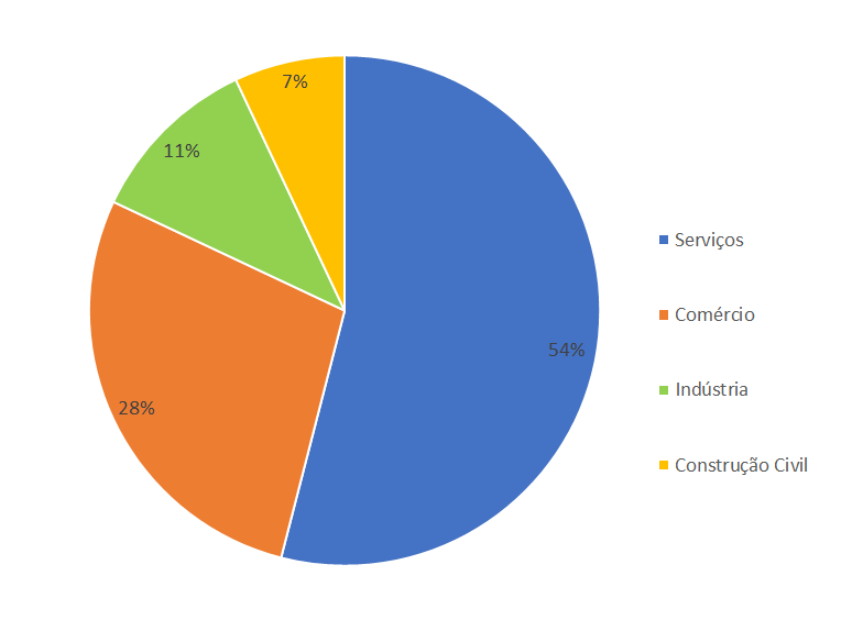 Terciário*: comércio, educação, saúde, telecomunicações, serviços de informática, seguros, transporte, serviços de limpeza, serviços de alimentação, turismo, serviços bancários e administrativos, transportes, etc.