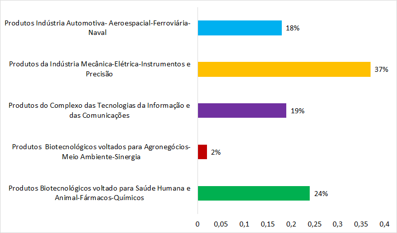 Indústrias de produtos tecnologicamente sofisticados – Percentual (%) de representatividade por tipo – Contagem – 2020