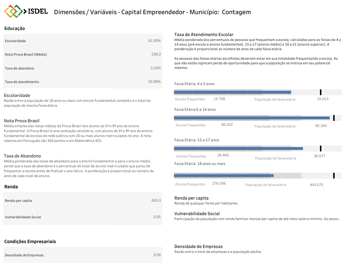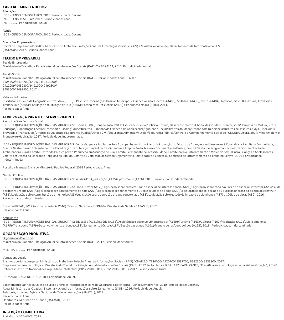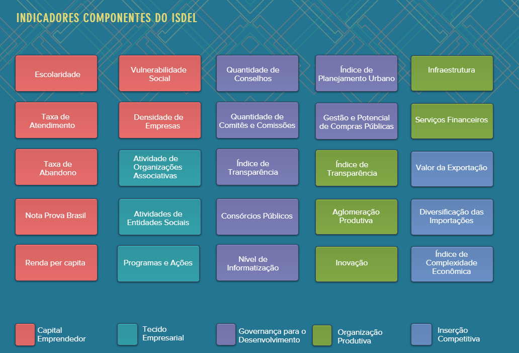 - O índice utiliza 135 indicadores e variáveis de fontes oficiais, divididos nas cinco dimensões do DEL – Capital Empreendedor, Tecido Empresarial, Governança para o Desenvolvimento, Organização Produtiva e Inserção Competitiva.