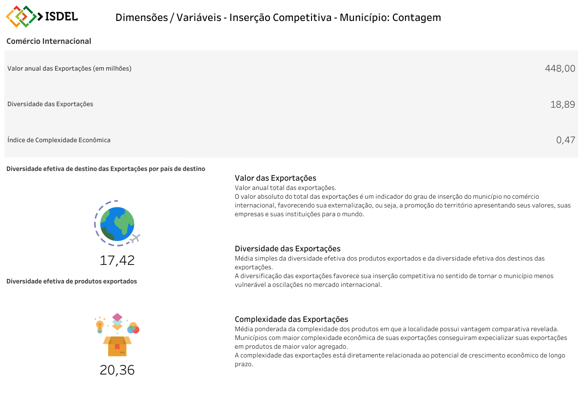 As exportações são parte fundamental da inserção competitiva do território, pois possibilitam o ingresso de recursos capazes de contribuir com as estratégias de desenvolvimento econômico e são em grande parte determinantes do posicionamento competitivo na direção de externalização.