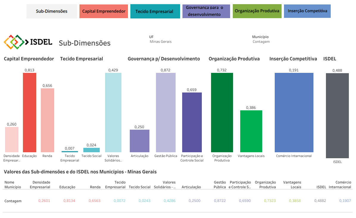O Índice Sebrae de Desenvolvimento Econômico Local – ISDEL – é o índice do Sebrae Minas que busca representar em termos quantitativos as dimensões do desenvolvimento, tal qual a abordagem DEL, aderente a nosso modo de pensar e atuar territorialmente. O indicador, criado pelo Sebrae Minas, sintetiza dados sobre as cinco dimensões responsáveis por promover o desenvolvimento econômico local.