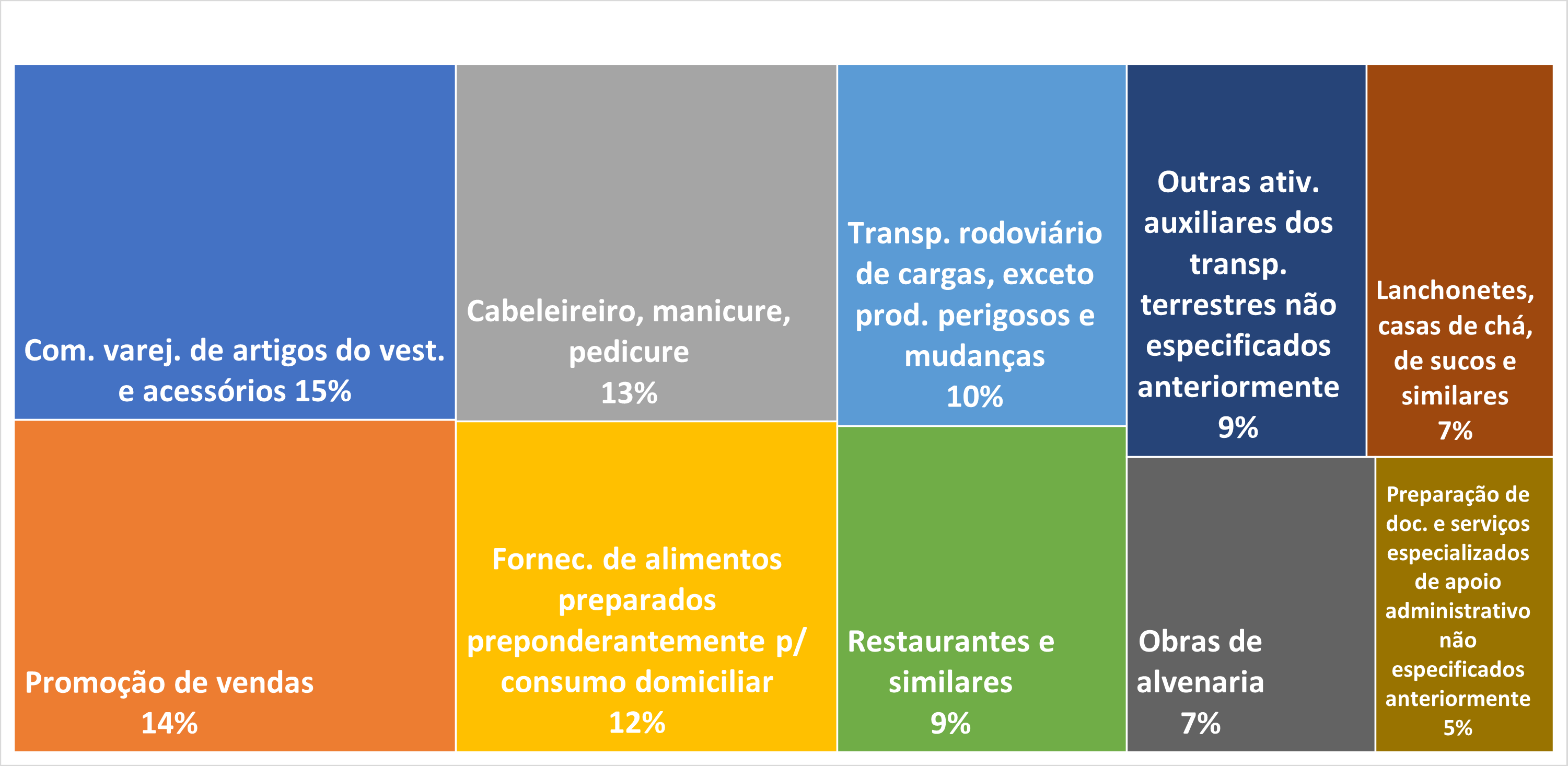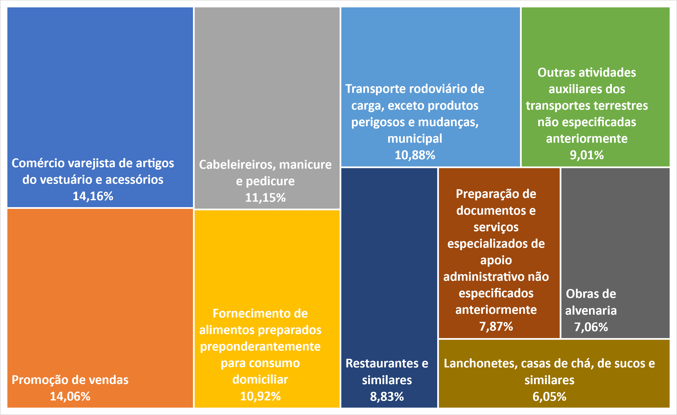 Principais atividades econômicas das empresas abertas (%) – Contagem – 2020