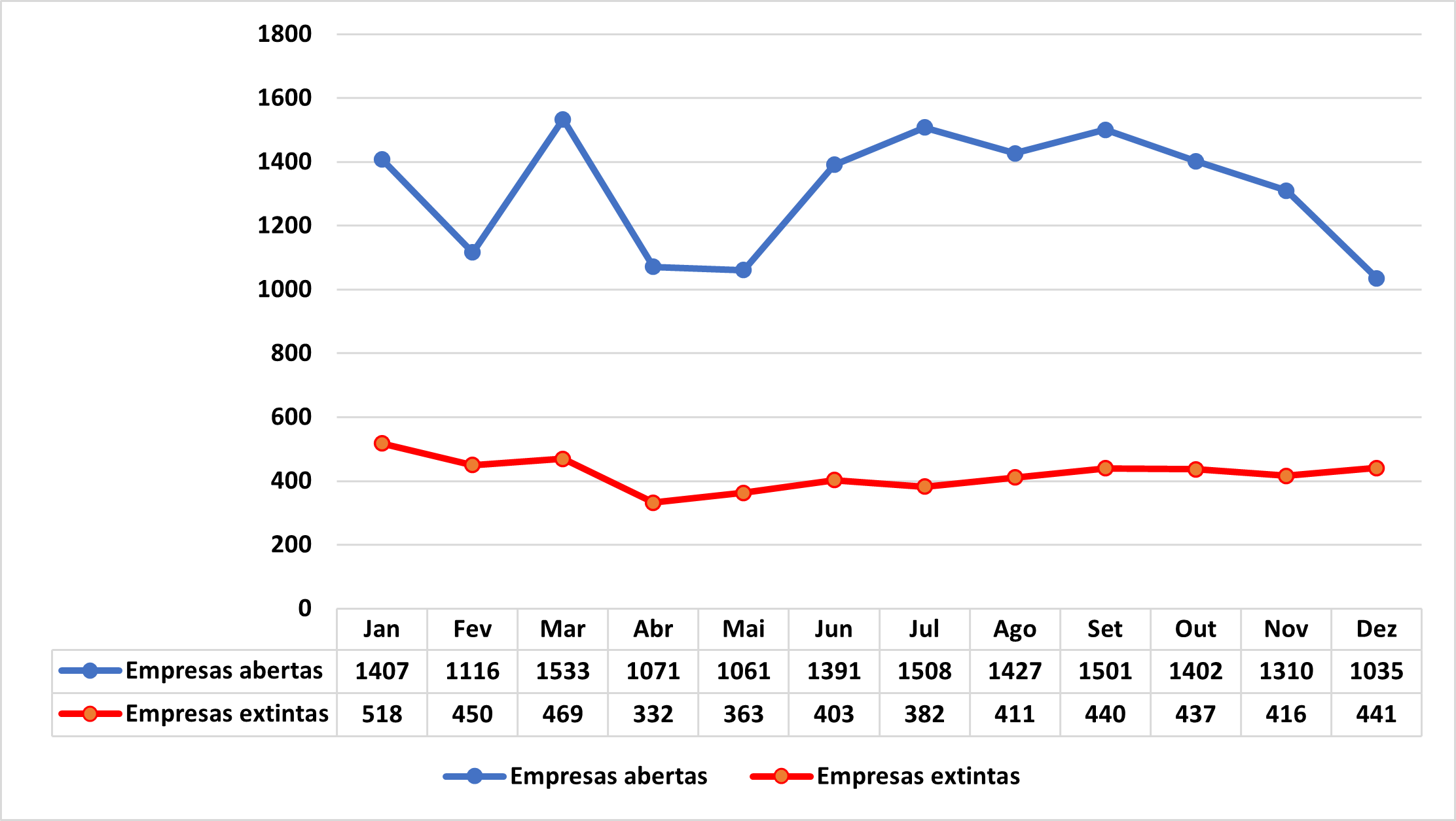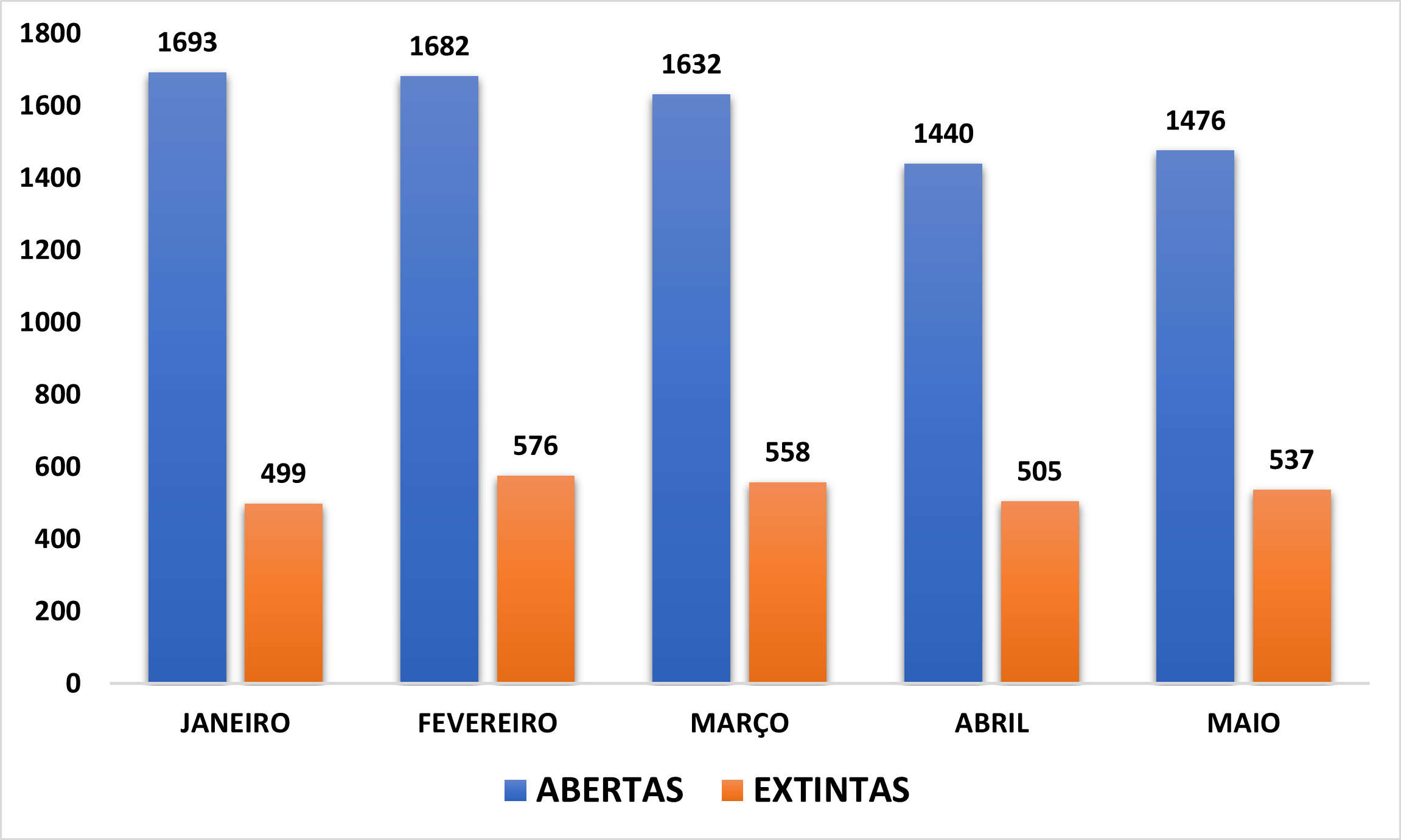 Total de empresas abertas e extintas – Contagem – Janeiro a Maio – 2021