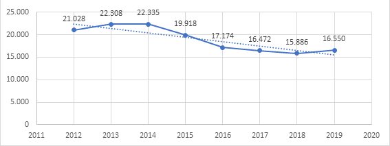 Turismo – Quantidade de empregos gerados – Contagem – 2012 a 2019
